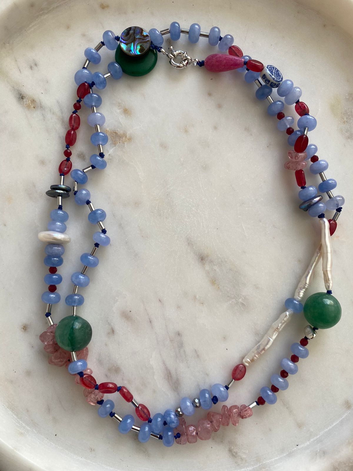 Collar con mezcla de piedras naturales semi preciosas con broche de chapa de rodio.